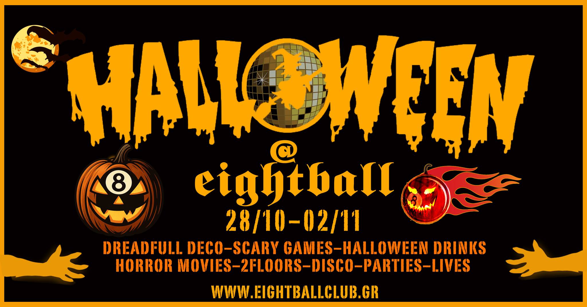 Το 8Ball, το CLUB που έφερε το Halloween και όλα αυτά τα ξενόφερτα έθιμα του Διαβόλου στην πόλη μας, πιστό όπως κάθε χρόνο στο ραντεβού του, σας προσκαλεί όλες και όλους σε διάφορα ξέφρενα πάρτυ χωρίς σταματημό!!!